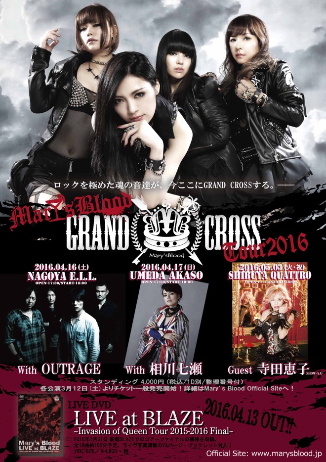 Mary’s Bloodの東名阪ツアーにOUTRAGE、相川七瀬、寺田恵子