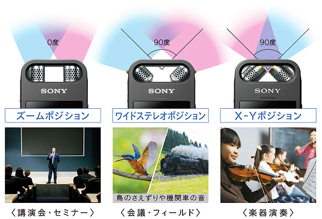 ▲3つのマイクポジション。ソニーのサイトの製品ページで紹介されている使用例。