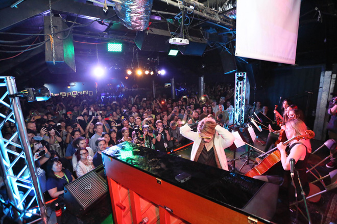 その後、<JAPAN NITE>という日本のインディーバンドをショーケースするイベントで、出演を予定していたアーティスト3組が急遽出演できなったことを知ったYOSHIKIは、「自分が少しでも力になれるなら」と、その穴埋めとして緊急参戦を表明した。開演まで何も知らされてない来場者は、突然のYOSHIKIの登場に驚くも、YOSHIKIの全身全霊のパフォーマンスに感動の渦が生まれ、涙を流す来場者も多数現れる状況となった。