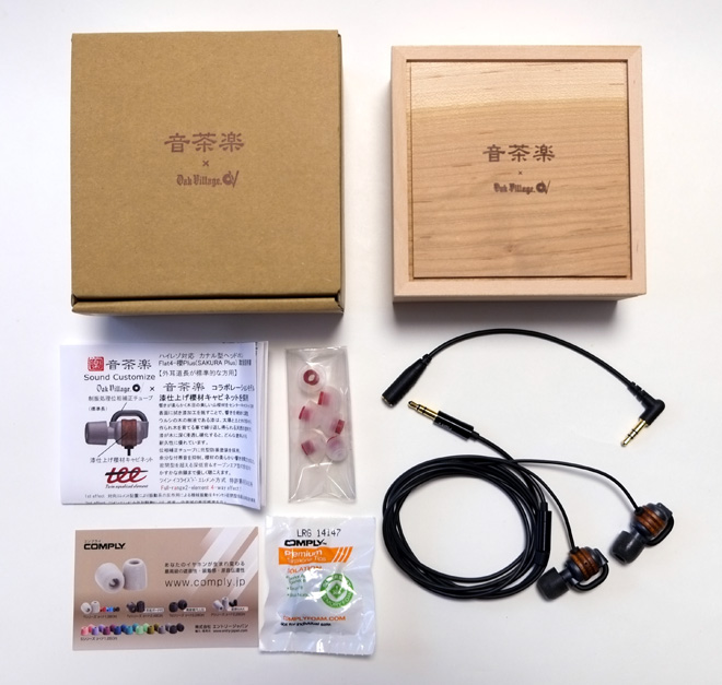 ・付属品:フォームイヤチップコンプライT-200 Lサイズ(Mサイズは本体に装着)、シリコン製イヤチップSpinFitSサイズMサイズLサイズ、L型接続コード、収納箱(櫻&桐無垢材)、クロス、取扱説明書兼保証書