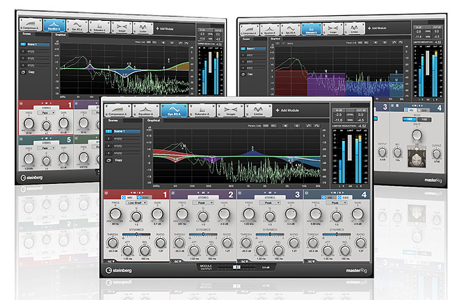 新機能ではまず、マスタリング用のVSTプラグイン「Master Rig」が搭載された。イコライザーやコンプレッサーなどのモジュールを組み合わせてマスタリングチェーンを作成することが可能。最大4つのチェーンを記憶でき、瞬時に切り替えて音の比較が行える。