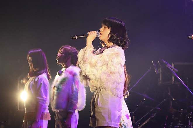 バックバンドの奏でるジャジーな音がリトグリにしては大人っぽい「NO! NO!! NO!!!」では、メンバーがステッキと椅子を使ってのダンスに挑戦。“あの子の悪口に のれば仲良くなれんの?”などなどのヒネたフレーズから曲タイトル通り“NO! NO!! NO!!!”と繋ぎ、本当の自分を出していく勇気を歌い上げる姿は痛快だ。