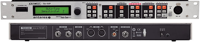 「TA-1VP」はティアックのTASCAMブランドからリリースされているボーカルプロセッサー/マイクプリアンプ。カンタンに言えば、マイクに向かって歌うと「あの声」を出してくれるエフェクター、「Auto-Tune」のハードウェア版だ(内蔵されるのは正確には「Auto-Tune Evo」というバージョン)。これさえあれば、パソコンなしでリアルタイムにピッチ補正が行える。