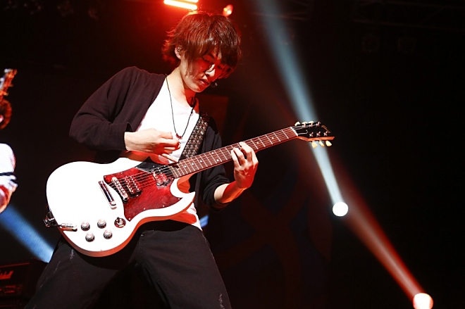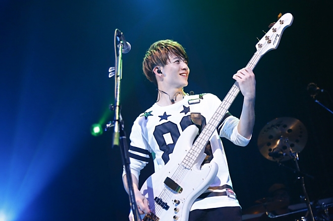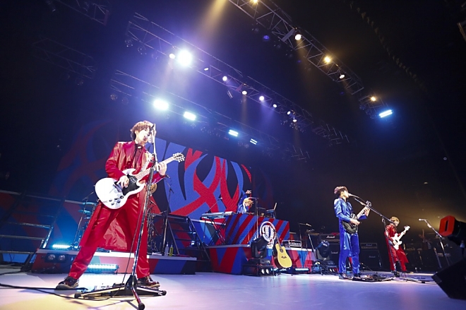 2日間で総勢4700人を集めた本ツアーでは、”準備は良いか!”とファンを煽るメンバーからの言葉がスクリーンに映し出され、凄まじい歓声の中RedとBlueの衣装に身を包んだ4人が登場。バンド編成で『皿に走れ!!!!』を歌い上げると、そのまま疾走感あふれる楽曲を演奏。その後TAKUMIがアコースティックギターに持ちかえ「キット」を披露し会場を盛り上げた。