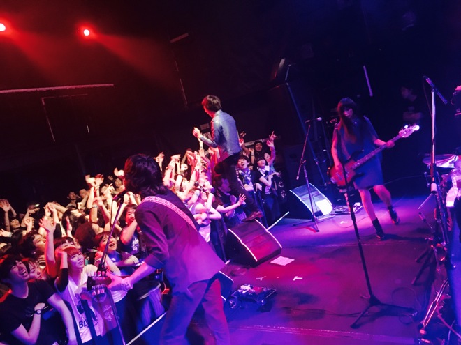 ツアー2日目の水戸ライブハウスの楽屋においてもそれは変わらなかった。男前な店長イナバ氏寄贈のねばーる君ストラップを身につけ、ねばーる君が描かれた水戸納豆風味のうまい棒をつまみにビールを煽りながら、しかし、ふなっしーがいかに愛しいかを語る姐さん……いやもちろん、ねばーる君もお気に入り。元のフェイバリットは奈良のせんとくん、今はキリミチャン、だそうで。へえー。