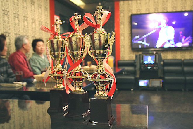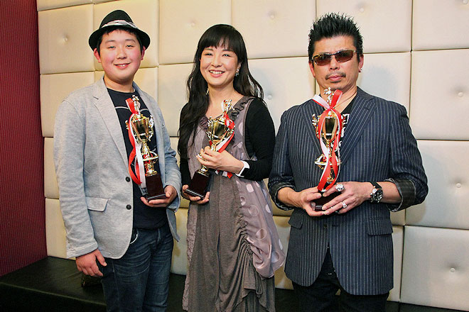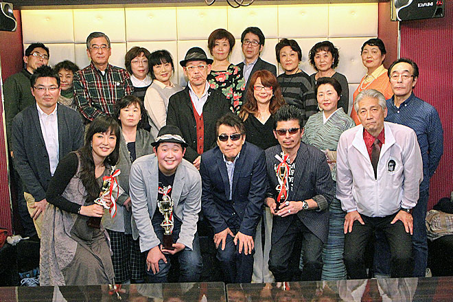 最後に、審査結果が発表された。14歳とは思えない堂々とした歌いっぷりだった男性がDAM賞、感情をいっぱいに込めて情熱的に「夜明けのブルース」を歌った女性がユニバーサル賞、そして最優秀賞となるレーモンド賞は、本人同様にサングラスで渋く決め、低音から高音まで美しく響かせて「望郷屋台酒」を歌った男性が受賞。3人にトロフィーが贈られた。その後、全員での記念写真、そしてレーモンド松屋との2ショット写真の撮影ですべてが終了。全員が幸せそうな笑顔で帰途についた。
