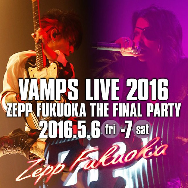 <VAMPS LIVE 2016 ZEPP FUKUOKA THE FINAL PARTY>と題された公演はZEPP FUKUOKAのファイナルに華を沿えるもの。VAMPSは同公演を加えてZEPP FUKUOKA公演数を31本に伸ばし、同会場における最多公演記録を更新するなど、2012年に閉館したZEPP SENDAIの最多公演記録22本に続いてZEPPの歴史にその名を刻み続けている。
