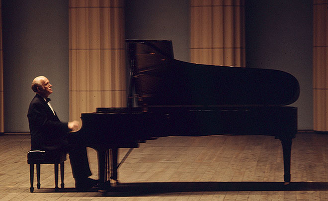 1915年ウクライナに生まれ、1997年に没した20世紀最大のピアニスト。独学でピアノを始め、19歳の時にショパンのプログラムでリサイタルを開き成功を収めた。その後、モスクワ音楽院でネイガウスに学ぶ。プロコフィエフと親交を深め、ピアノソナタ第7番を初演。1945年には、全ソビエト音楽コンクールで第1位に輝き脚光をあびる。その後、西欧で活躍し20世紀を代表するヴィルトゥーゾとして世界で活躍。日本には1970年以来度々来日し、多くの音楽ファンを魅了した。なお、1969年に出会って以来、彼はヤマハピアノを愛用し続けた。