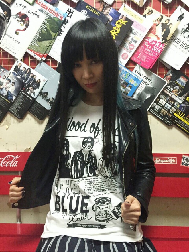 前回Tシャツについて書いたけど、実物を載せておく。姐さんは白をチョイスしていて、RUDE GALLERYの革ジャンの下に着ている。こんな感じで着てもすごく良いと思うし、襟ぐり切ったりしても良いかもね。好きにして。