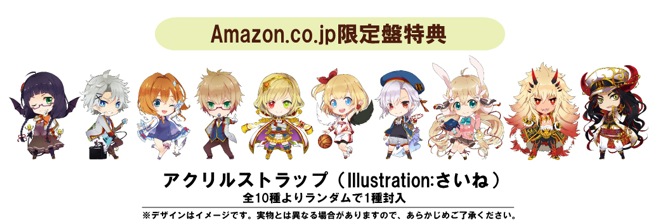 そして、赤盤、青盤の封入特典として、前作で好評を得たアクリルストラップも同梱。赤盤、青盤歌唱参加の1期(ミラ、ザック、カモメ、クライヴ)、2期(ツキミ、マール、ヨシュア)と、茶熊学園1期、2期人気投票1位の(ヴィルフリート、オウガ、シャルロット)を加えた全10種よりランダムで1種封入される。
