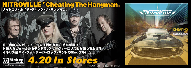 ラウド&エキサイティングでグルーヴィーなハードロックを聴かせるナイトロヴィルが、4月20日に2ndアルバム『チーティング・ザ・ハングマン』で日本上陸を果たす。人々を圧倒するド迫力の女性シンガー、トーラがフロントを務めるロンドン在住のロック・バンドだ。