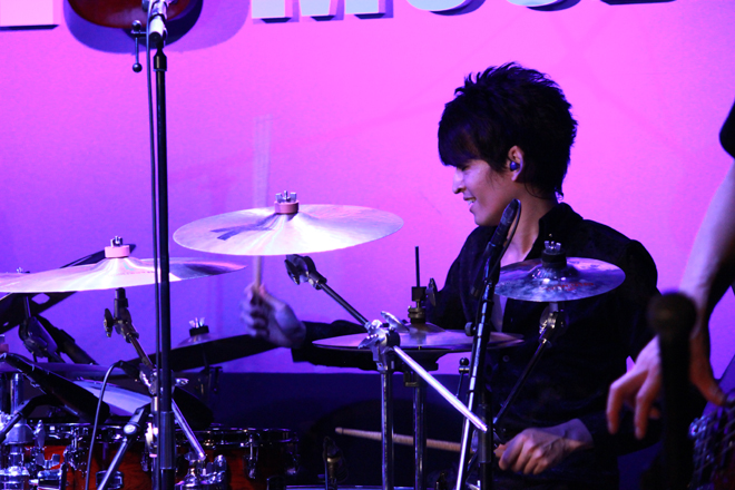 MCタイムは、安藤→河野→坂東→田中の順番でひとことずつ。安藤が「今日初めて聴いて、CDを買いたいと思っていただければ……思っていただけなかったらどうしよう」とおどけると、坂東が「今回のテーマは“冒険”です。音楽的に冒険してます」と胸を張る。最後に伊東が「今日は思いのほか、ノッてくれてうれしい。“やったー!”と思う。ありがとうございます」と、感謝の言葉で締めくくる。前半の新曲コーナーはここで終わり。ここから、後半のスタートだ。