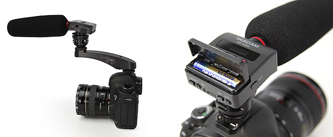 デジタル一眼レフカメラのアクセサリーシューに装着できるショットガンマイク一体型リニアPCMレコーダー