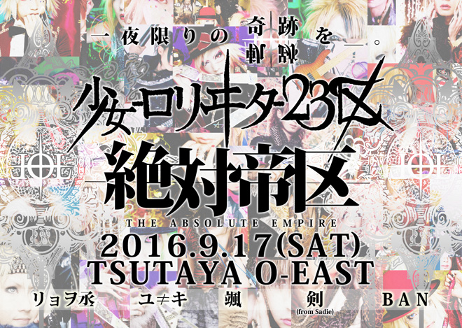 少女-ロリヰタ-23区(読み:ロリイタニジュウサンク)が、2016年9月17日にTSUTAYA O-EASTにて一日復活ライブ<絶対帝区>を開催することを発表した。