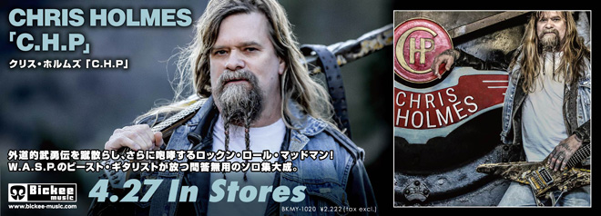 4月27日、クリス・ホルムズが全世界デビューとなるコンパイル・アルバム『C.H.P』をリリースする。「陸軍学校で軍曹を殴って処分になった」、「十代の頃は少年院で過ごした」、「母親が現役のヘルズ・エンジェルス」…と話題を振り撒き一世を風靡した元W.A.S.P.のクリス・ホルムズだ。