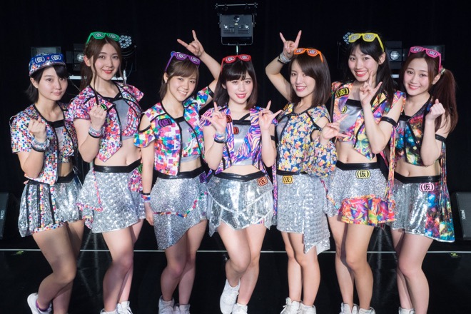 「(仮)は返すぜ☆ Be your soul」などの激しいナンバーを披露したあとは、彼女たちの事務所の先輩にあたるメロン記念日がパンクバンド、ニューロティカとコラボした「ピンチはチャンスバカになろうぜ!」のカバーを投入。EDMチューン「 Shout!!!!!!!」、エモーショナルな「青春の涙」など、様々なジャンルのサウンドで観客の熱量を高めていく。