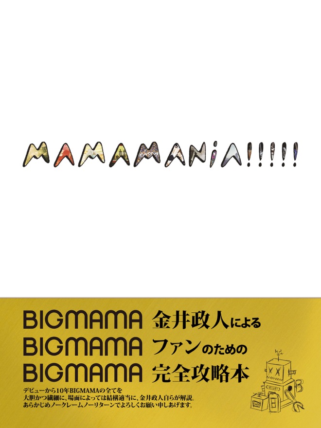 そして、『MAMAMANIA!!!!!』(マママニア)では、今年でデビュー10周年を迎えるBIGMAMAの全てを、“大胆かつ繊細に、場面によっては結構適当に”ボーカル金井政人自らが気の向くままに解説しているという。前述のとおり、5月8日のZEPP TOKYOのライブ会場にて予約販売されるが、会場での購入者には、金井政人が直筆であなたの名前を書き入れたサイン本が発送される。
