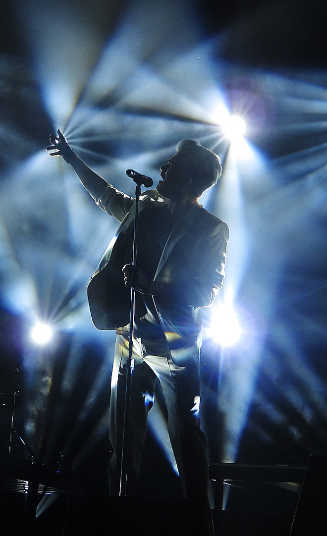 今回のツアーは3部構成になっていて、1部ではダークぽいサウンドの曲が多く、2部はヴォーカルに重点をおいた聴かせるパート。ヘルシンキではシルバーのスーツで登場。バラードっぽい曲では彼の素晴らしい声がぐっと引き立ち、うっとりと聴かせてくれます。間のトークでは世界中を旅していろんな人と会えることはとっても好きなことで、音楽がそれを可能にしてくれる。性別、年齢、肌の色、髪の色、セクシャリティなど外見の何が違おうと俺達は皆同じものを持っている。それはハートで、そのハートが求めるものは愛であったり、楽しみであったり、ザ、オリジナル・ハイであったりと皆一緒だと語ります。
