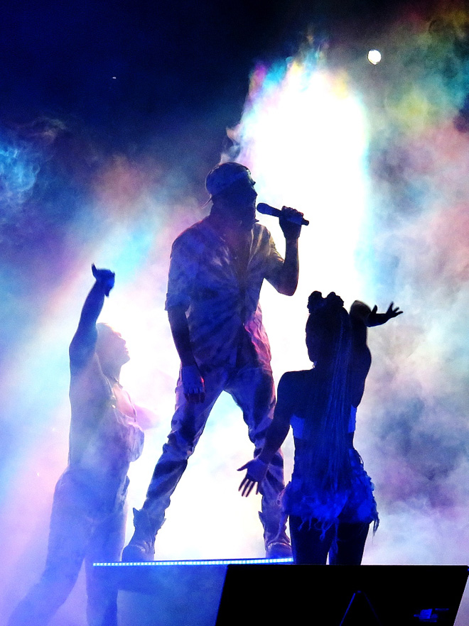 3部はアップテンポの曲が集まっていて歌って踊るダンスパート!楽しく、時におかしく、時にセクシーに2人のダンサーとの息もぴったり!あれだけ動いても息切れすることなく歌いこなし、ハイノートでは声が伸びる、伸びる!聴いてて気持ちいいほど伸びる。素晴らしい声量の持ち主であります。ヘルシンキ公演ではこの3部で登場した時に髪の毛が今までに見たことないほど乱れていた(笑)のでありますが(この時の髪の毛は本人が後でインスタグラムにも写真アップしてます。)、3部最初の曲「The Light」が終わったあたりでダンサーのかぶっている帽子に気がついたようで、それを拝借(笑)。日本ツアー中にデヴィッド・ボウイがなくなり急きょセットリストに入った「Let’s Dance」はセットリストから抜けることもあったのですが、ヘルシンキではやってくれてうれしかった。アヴィーチー、ナイル・ロジャース、レディー・ガガがかかわっている曲「Lay Me Down」「Shady」「Fever」はメロディーで。これが楽しくてセクシーでたまりません。日本公演ではレゲエヴァージョンだった「If I Had You」は普通に戻り、今となってはあのレゲエヴァージョンは一体なんだったんだろう?と懐かしく思えます。