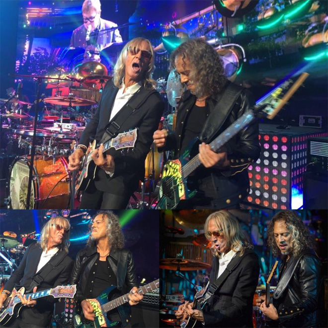 土曜日(4月30日)、米ラスベガスで開かれたエルトン・ジョンの公演に、メタリカのギタリスト、カーク・ハメット(G)がゲスト出演した。