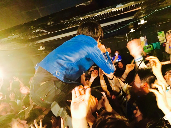 俺達はScoobie Doの後の出番だった。燃えた。ベスト・アルバム『THE BLUE』に入ってる「青く塗れ」も、最初のアルバムに入ってる「春の嵐」も、同じくらいぶち上がれてしまう鹿児島の熱さが素晴らしかった。新曲の「BLUE」、すげー良い曲だったでしょう?