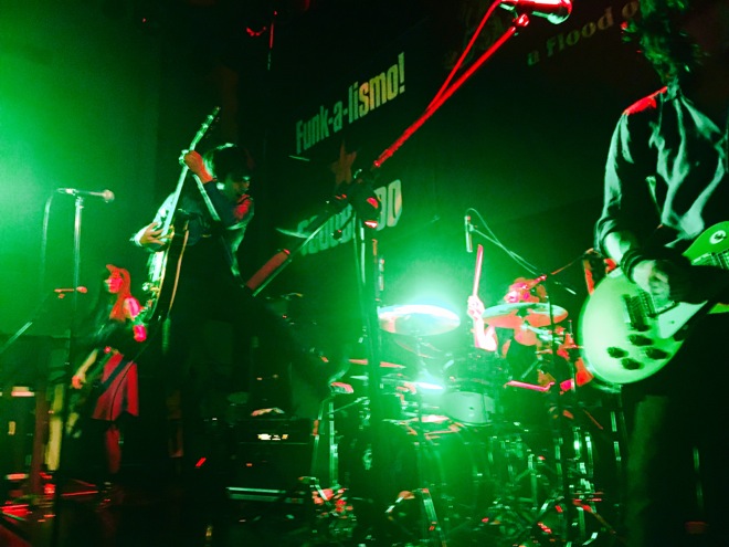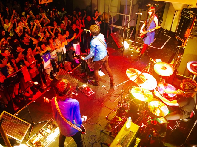1曲目は「博士の異常な愛情」だったと思うんだけど、ロフトのステージを覆う幕がゆっくりと上がっていってイントロに入る時は正しく張り詰めた空気を感じたな。そのすぐ後に、新体制を御披露目しに行くつもりで大阪と名古屋へ短いツアーに出たんだけど、その時もScoobie Doを誘って。その2本のライブが終わった後、シュウさんが「新体制ばっちりじゃん」って言ってくれたんだよね。