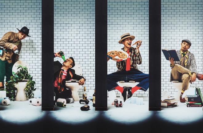 そんな彼らの新作公演タイトルは『Wonderful Clunker -素晴らしきポンコツ-』。脚本には、漫画「テルマエ・ロマエ」の作者ヤマザキマリを起用。「テルマエ・ロマエ」は“風呂”がテーマの作品であったが、s**t kingzの最新作は、水繋がりなのか、“W.C.(トイレ)”が舞台の作品とのこと(まあそれだけ聞くと「GO FOR IT」のMVをふと思い浮かべるファンもいるかもしれないし、いないかもしれない)。