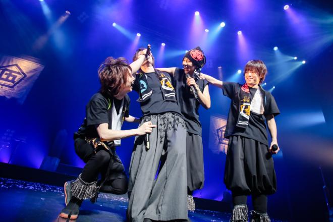 「『序』~舞闘絵巻~、無事初日を終えることが出来ました。これが本来魅せたかった形であったわけですが、自分は演技というのが初めてだったので、7年ぶりにライヴ前に緊張しましたね。オープニングにガッツリとコンセプチュアルな演出を魅せたこともあって、とにかく緊張したので、必死過ぎて、正直あんまり覚えてないです(笑)。それだけ夢中だったってことだと思います。1つ個人的に残念だったのは、初っ端でヘッドセットが緩んでしまうというアクシデントが起こって、声をマイクに拾わせるために必死に大きな声を出して歌ったので、早い段階で声を嗄らしてしまったんですよ。それもあって、それぞれの見せ場でもあったキャラクターソング「千の願い」を、完璧な状態で歌う事が出来なかったことが、すごく悔やまれますね。でも、4人でのステージは、何回も重ねた練習のときよりも、1回の本番の方が意思の疎通が出来ていたと感じられたのが、すごく嬉しかったです。この先、ツアーで回を重ねるごとに成長していけるんだと思うと、楽しみでしかたないです。4人では、最高の形を初日で残せたと思うので、ここからは個人的に悔いを残すこと無くさらに頑張って、“今日以上の最高”を魅せていけるように頑張りたいと思います!」──石城結真(みーちゃん)