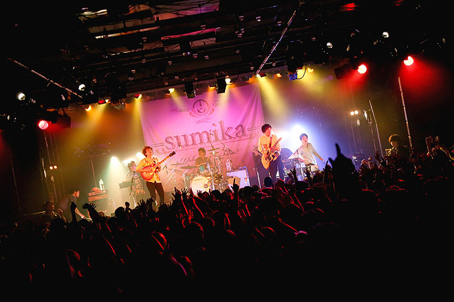 sumikaは、さまざまな人にとっての“sumika(住処)”のような場所になってほしいとの願いを込めて、2013年に結成。現在のメンバーは、片岡健太(Vo./Gt.)、荒井智之(Dr.)、黒田隼之介(Gt./Cho.)、小川貴之(Key./Cho.)の4人。ライブは毎回ゲストを入れて行われ、音楽家以外に映像作家や写真家、絵描き、詩人などさまざまな芸術家とともに作品を制作する。