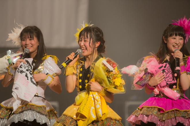 本編ラストのMCでは、リーダーの汐咲玲亜が「たくさんの人に支えられてここまで来ました。4年目に向かって頑張りたいと思いますので、よろしくお願いいたします!」と話し、これからも進み続けることを宣言。アンコールでは、せきやゆりえデザインの可愛らしいワンマンTシャツで登場すると、「WASSHOINTHEWORLD」「トーキョードリームパレード」で再び会場を盛り上げる。最後のMCで、メンバーそれぞれが「もっと大きな会場に行きたい」という強い気持ちと、メンバーやフェスティバーへの感謝を伝えて「シダレヤナギ」で締め、ワンマンライブは幕を閉じた。