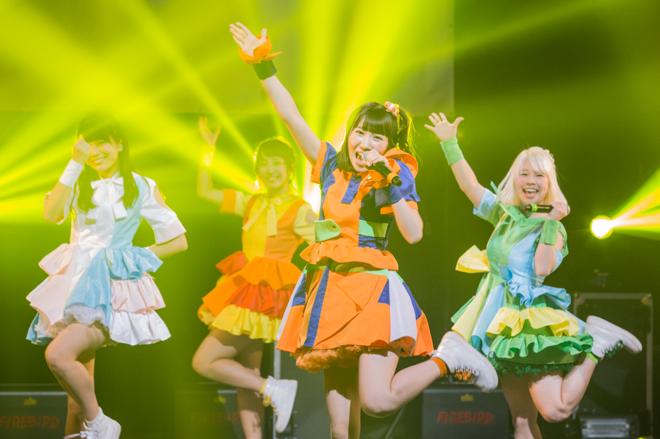 中盤には新衣装で登場して2曲を歌い上げると、「ホムラノシズク」のあとのMCが始まるやいなや、突如スクリーンに映像が流れ、7月27日に1stアルバム『ワッショイレコード』をリリースすることが発表された。メンバーは驚きのあまり困惑した様子を見せつつも大感激。フェスティバーからも大きな歓声が上がり、その喜びのまま、「マジカルパレード」まで全12曲が披露された。