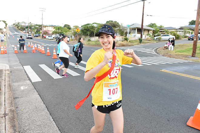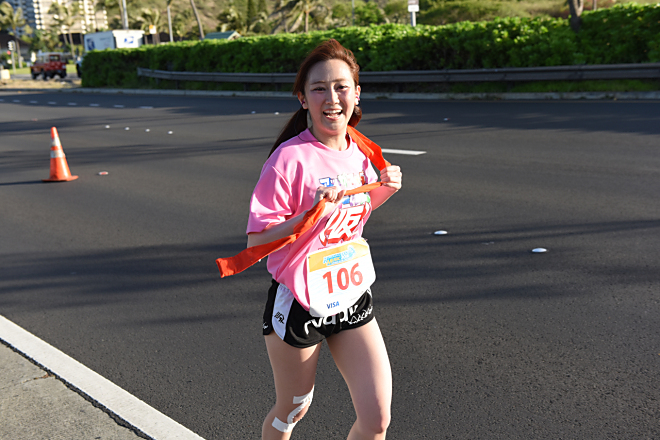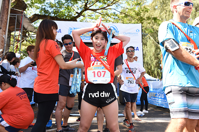 6.3kmの道のりを経て、最初にゴール地点のカピオラニ公園に姿を表したのは仙石。彼女はチームメイトの3人と共にゴールゲートをくぐり4時間6分10秒という記録をたたき出してレースを終えた。そして「Teamrunning alien」に遅れること16分後、疲弊しきった表情で佐藤がゴール付近に到着し、最後はアプガのメンバー全員で佐藤を迎え入れて7人でゴールゲートを超えた。なお「チーム参四五」は4時間22分28秒という結果に終わった。