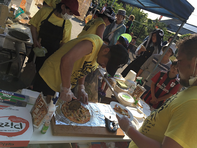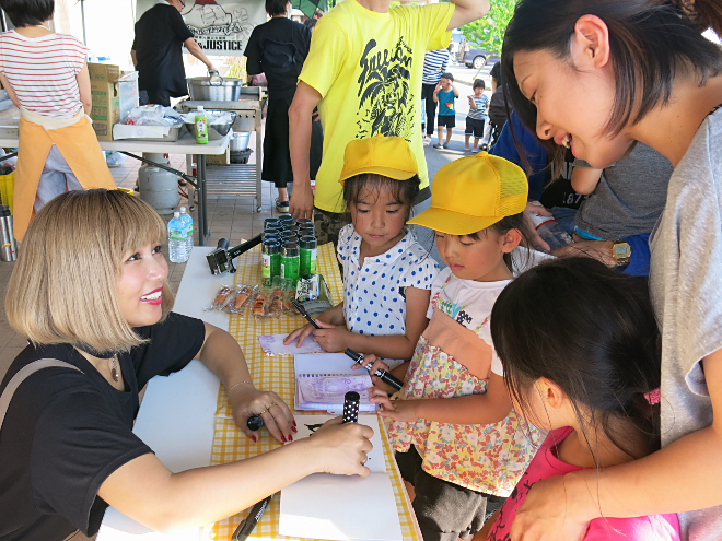 翌日23日(月)には、MINMIとATTACKDEMのメンバーが地震の被害にあった熊本市益城町の特別養護老人ホーム「いこいの里」を訪れ、地元の人たちに向けて炊き出しなどの支援活動を実施した。現場ではMINMIによるサイン会も行われ、会場には多数地元のファンの姿も。