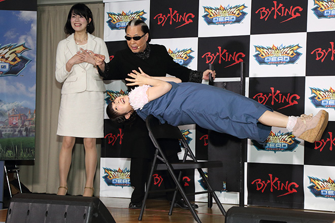 バイキングが発表する新作アーケードゲーム『マジシャンズデッド』がロケーションテスト(販売前の試作機を試すことができる一般向けイベント)初日を迎え、秋葉原にてカントリー・ガールズ嗣永桃子(ももち)とMr.マリックが出演するセレモニーイベントが開催された。イベントでは、“超能力”Mr.マリックと“魔法使い”ももちが、ゲーム同様に不思議な力を披露した。
