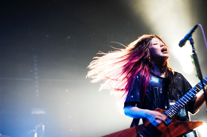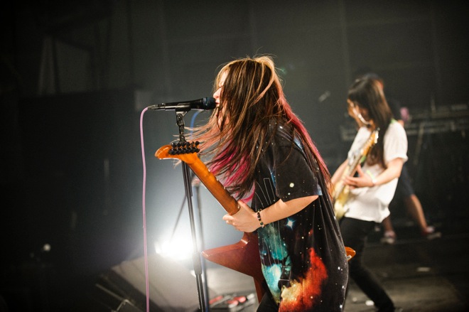 MCではあやぺたが「今ここに日本で一番パンクスが集まってるんですよね!? 今その前でライブをしてるわけです。パンクシーンのど真ん中にいる。でも、ここでただライブして帰るだけじゃあかんねん! SATANIC CARNIVALに爪痕残しにきてんねん! 女だからってなめんなよ!」と叫び、再び激走し始める3人。