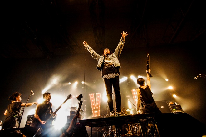 不穏なムードを駆り立てるSEの「Astra」が流れ、Yudai(G)がアルペジオを奏でる中、“サークルピット!サークルピット!サークルピット!”というRyoの雄叫びから演奏はスタート。以下、怒涛という言葉がふさわしい勢いで、昨年2015年10月にリリースした目下の最新アルバム『The Sign』の収録曲を、随所随所にデス声のグロウル、Gaku(Dr)によるツインペダルの連打、ヘヴィな演奏を重低音で支えるTeru(B)の的確なプレイ、ブレイクダウン・パートなど、メタルコアならではの聴きどころを散りばめながらたたみかける。