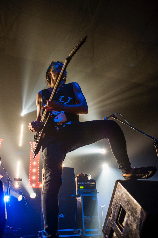 “まだまだこれからだぜ!”と叫ぶRyoをはじめ、バンドの息は終盤になっても全然上がらない。「Beloved」ではRyoが客席のモッシュにダイヴ。すると、CrossfaithのKoieがステージに乱入。Ryoとともにシャウトをキメた。そんなサプライズに狂喜する観客に向かい、“みんなで助け合い、支えあって、思いっきりめちゃくちゃやれる場所を作っていきたい”とRyoがメッセージを投げかけ、バンドは現在のライナップのスタートを印象づけた「The Fire Inside」で熱演をしめくくる…予定だった。