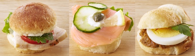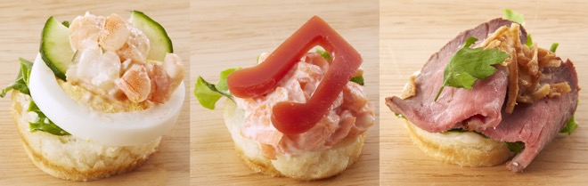 ・ローストビーフのオープンサンド 本格のおいしさをミニサイズに。マスタードとフライドオニオンがアクセント。