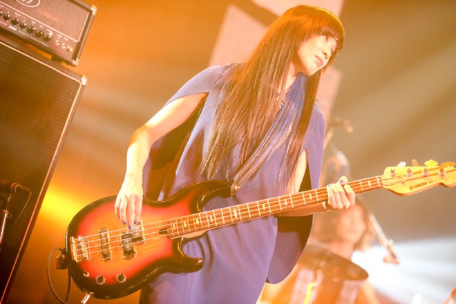 「Golden Time」「The Beautiful Monkeys」「Blood Red Shoes」というアグレッシヴな3曲を彼らは冒頭からたたみかける。「10年間、ブルースとロックンロールしかやってこなかった」とヴォーカルの佐々木亮介は言う。しかしそれは、ライヴバンドとして日本のロックシーンに確かな存在感を示すことにつながっているのだ。この日のフロアのいきなりの熱狂がその証明だ。さらに続けて「青く塗れ」を鳴らして、佐々木が言う。「今日、ヤバいね。すげえヤバいことが起こりそうな気がすんね!」。HISAYOが佐々木を見て、満面の笑みでうなずいて返す。観客からは大歓声が起こる。<憂鬱のブルーを超えて 青く塗れ>、「青く塗れ」の中でも心揺さぶられる歌詞の一節がそのままステージに再現されたかのような、底抜けの青さの、美しいシーンだった。