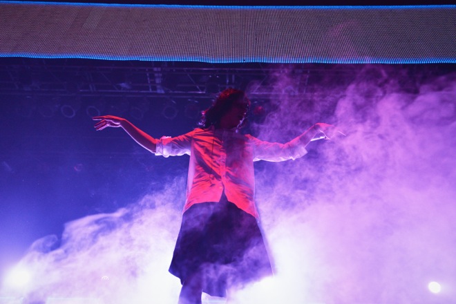 轟きを上げた『MONSTER』に合わせ、無邪気に飛び跳ね、頭を振りまくる観客たち。感情をガンガンに上げていく歌が、騒がずにいれない衝動と衝撃を与えていく。理屈なんか消してしまえ、脳味噌をイレースしてこそ、ここに居て狂う意味がある。