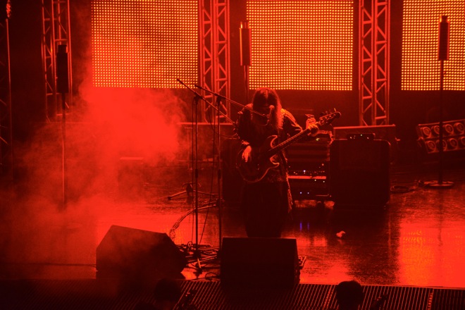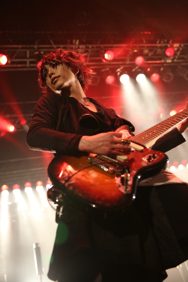 身体中から魂を振り絞り暴れ狂えと言わんばかりに、千秋の声が熱狂を連れてきた。『「君の子宮を触る」』が、観客たちを絶望の奈落へと引きずり込んでいく。痛い衝動が、なんて快楽を呼び起こしていくことか。腹の奥底へと響く音の衝動。絶望のシュプレヒコールを上げろと言わんばかりに黒く重く唸る調べが、身体を揺さぶっていく。『「肋骨少女」』が精神に鈍い衝撃を与えていた。その音の拳は、舞台上へ傾づきたくなるくらい甘美な嬉しい痛みと慈愛に満ちていた。放たれる音の痛みが、とても心地好い。