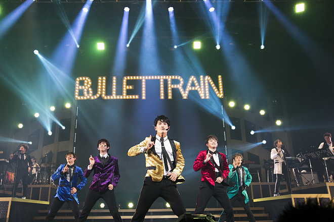 その後もボーカル二人だけで届ける「Keyword」「FLASHBACK」ではしっとりと、ダンサー陣も煽りを入れて熱く燃え上がる「OVER DRIVE」等ではアッパーにと、さまざまな情景を描く7人。ポップ、ロック、EDM、R&B、ヒップホップと多彩な超特急の音楽性は、生バンドで奏でられることによりジャズ、ソウル、ファンク、オールドスクール等の要素を得て、7人の歌とダンスをいっそう表情豊かなものにする。最新シングル「Yell」で会場の全員に温かなエールを送り、このツアーのために書き下ろされた「Synchronism」で想いの籠った熱唱と、絆を体現するようなダンスを繰り広げて、ライブを美しく締めくくる……かと思いきや、本日はツアーファイナル。ここで終わるはずもなく、なんとアンコールでは驚きの三大発表が為された。
