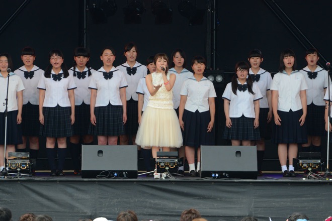 メインアクトの公演に入る前には元AKB48の高橋みなみが登場。「みなさんこんにちは! 高橋みなみです! 暑いですね! 本日私2回目のハウステンボスになります。私、今回ですね、『がんばろう!九州』のサポーターとして出演させていただいております。お昼時、ハウステンボス内を歩いてですね、佐世保バーガーを食べさせていただきました! こんな暑い中ですけども皆さんと楽しんでいきたいと思っております!」と、会場を盛り上げる。さらに、「せっかくこんな素敵なステージに立たせていただいているので、1曲歌わせていただいても宜しいでしょうか! 今から歌わせていただく曲はNHKの番組内で私が作詞を担当して作らせて頂いた曲なのですが、たくさんの方に合唱ソングとして歌ってもらえる曲になればいいなと思っています。」と、長崎県諫早市の私立鎮西学院高等学校コーラス部24人、長崎県長崎市 私立活水高等学校コーラス部 樟TwinkleStars8人の計32人のコーラスとともに、秋元康がプロデュースし、自身が作詞した「あの空」を歌唱した。