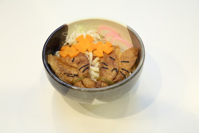 舞波班のきつねうどんは、店で出されるうどんと遜色ないくらいに味も美味しく、見た目も美しかった。油揚げをきつねの顔にするというアイドルらしい遊び心も高評価。先に触れたように油揚げの味付けだけが残念。