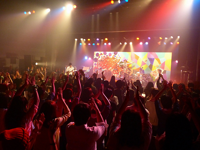 今回の公演タイトル“クレイジーワンダーパレス”は、2014年に開催された5周年記念 5ヶ月5会場マンスリー企画<555ツアー(トリプルファイブツアー)>の福岡公演「555ツアー~福岡クレイジーワンダーランド~」に準じてつけられたもの。2014年のライブではステージ後方に縦約3m×横約7mという巨大キャンバスを設置し、開場時からステージ上でメンバーの山田義孝がライブペインティングを行い、演奏中にも音楽とアートを融合させながら、巨大なキャンバスアートを完成させるというパフォーマンスで圧倒した。今回の公演ではどのような趣向がこらされたライブになるのか注目どころだ。
