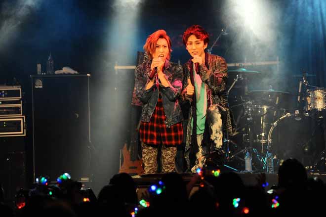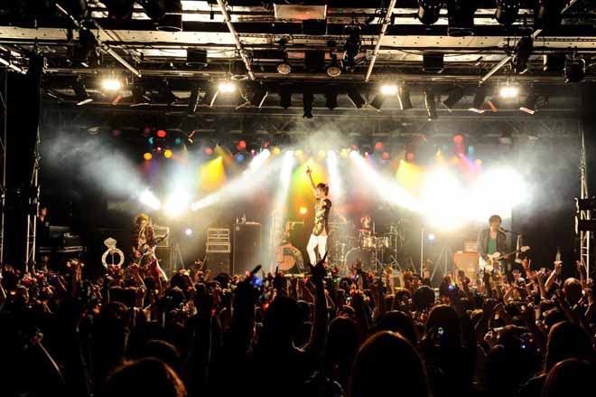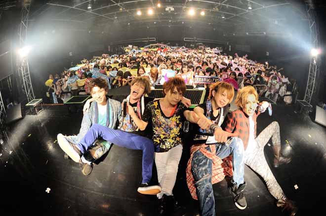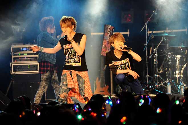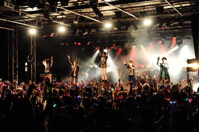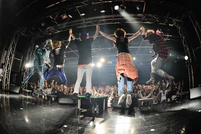 他にも「ここはどこだ?」という前置きからなだれ込んだ「新宿。」や「How much?」では、いつも以上に生々しいバンドサウンドを轟かすだけでなく、Daisukeがアコースティックギターを、Takashiがキーボードを奏でた「12月」や、HIKARU.のアカペラから幕を開けた「心から心へ」といった、心温まるミディアムナンバーも披露。また「The wondrous world」でスタイリッシュなダンスを魅せつければ、「関係ナイ」ではカメコカメオ達と一丸になって激しく踊り倒すなど、5人ヴォーカル曲も大量投下。まさに変幻自在なパフォーマンスを展開しつつ、「ハッピーをボッコボコにぶつけあう(Takeshi談)」、濃密なコミュニケーションを繰り広げていた。