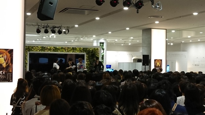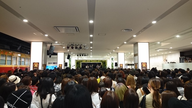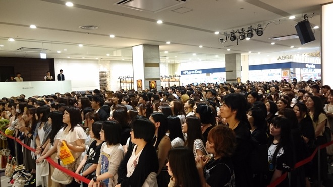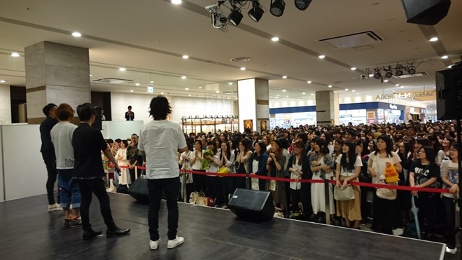 2日目の6月19日は大阪のくずはモール南館 ヒカリノモール1F SANZEN-HIROBAにて。この日の大阪はあいにくの雨模様だったが、9:30からのCD即売会には東京と同じく500人を超えるファンが駆けつけ、開演前には会場に約1500人のファンが溢れた。