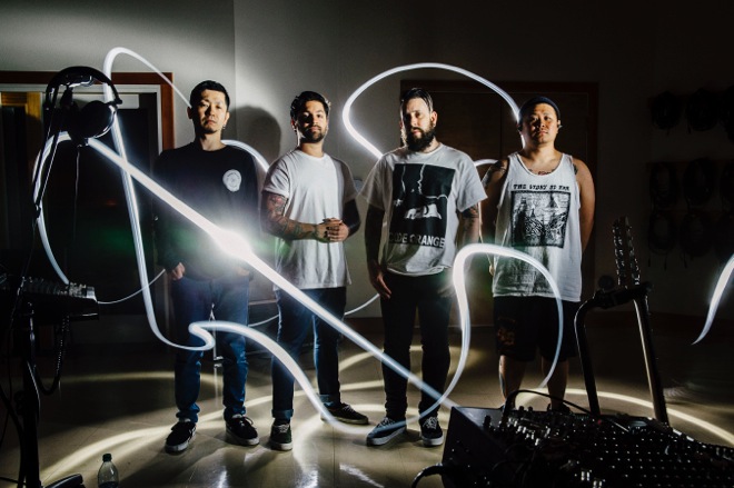 「今回、僕たちはオーガニックな録り方にこだわりました。ドラムで言えばノー・サンプルで、曲の頭から最後までノンストップで、バンドで合わせて録って、その場の音、ノリ、空気を曲に詰め込みました。ニルヴァーナや、レイジ・アゲインスト・ザ・マシーンなど、数々の伝説的アーティストの作品を録ったコンソールによって、更に生々しく、深い作品になったと思います」──Eiji