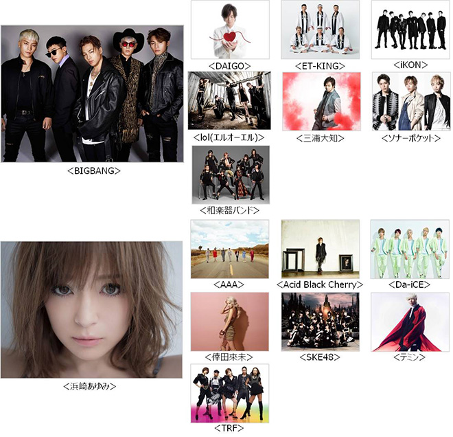 AAA / Acid Black Cherry / Da-iCE / 倖田來未 / SKE48 / テミン / TRF(※アルファベット順) and more…!