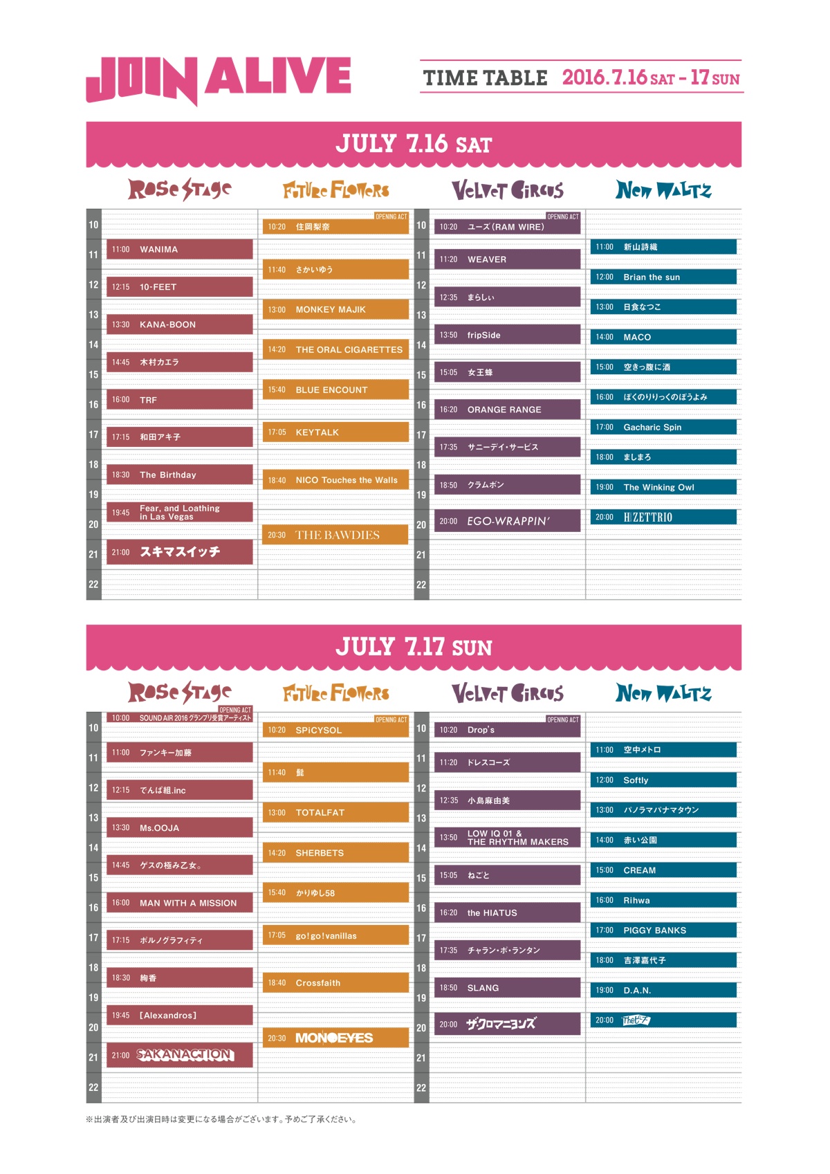 <JOIN ALIVE>タイムテーブル発表、ヘッドライナーはスキマスイッチ&サカナクション